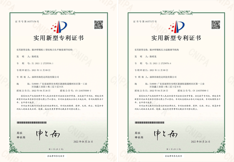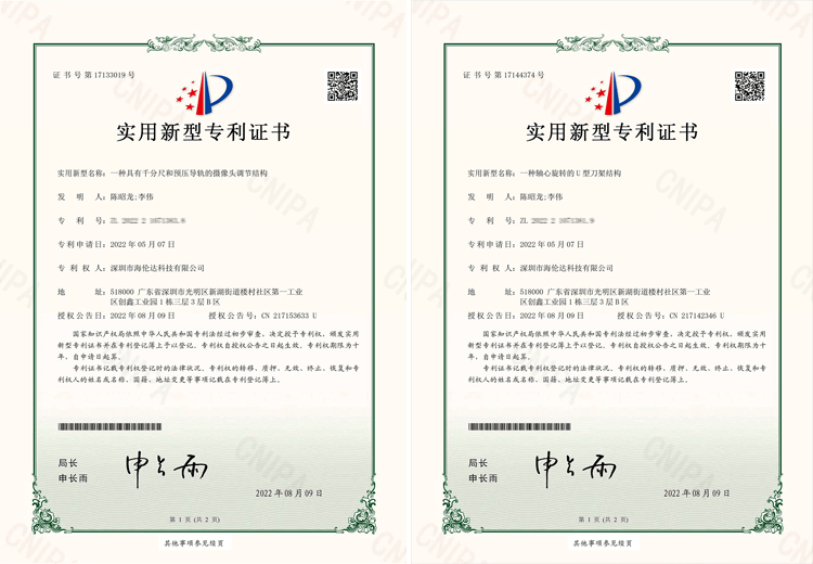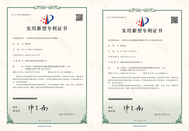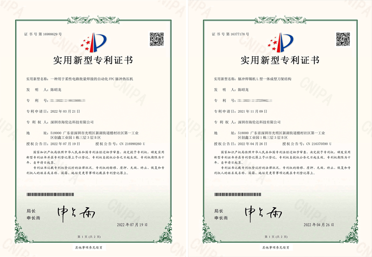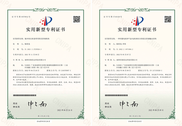 海倫達(dá)科技新申請的10項設(shè)備實用型專利,已審批完成