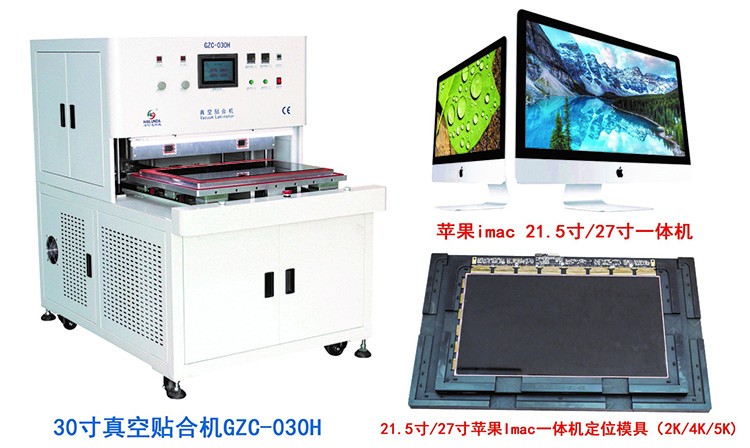 目前蘋果IMAC 一體機屏貼合分為21.5/24寸/27寸(有2K/4K/5K不同型號),采用帶模具貼合方式,貼合效果好