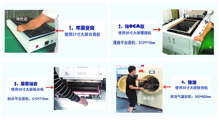 1、壞屏分離采用27寸分離機采用加熱板恒溫加熱,平臺受熱均勻,溫差小