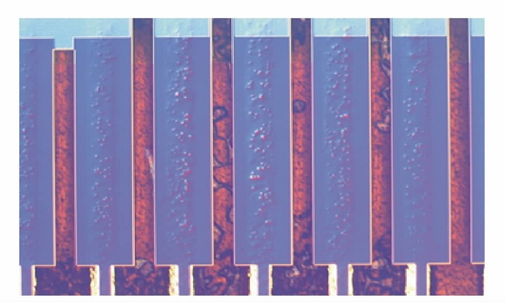 4、檢測:高清攝像頭對主壓后的產品進行視檢測,主要通過各部位的導電粒子變形情況進行綁定過程中的工藝條件和材料的確認。